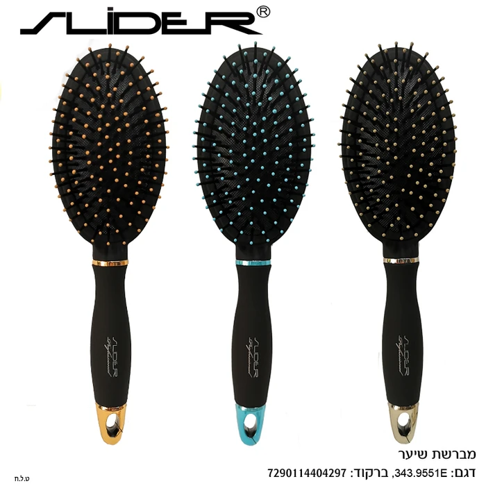 מברשת שיער אובלית – שחור מט עם קצוות צבעוניים